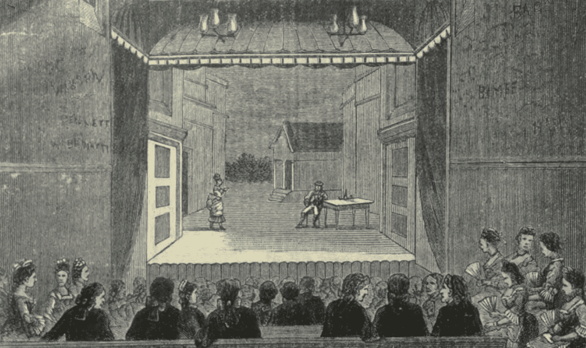 In the 21st century, a local French restaurant is located instead of the city’s first permanent theater.
