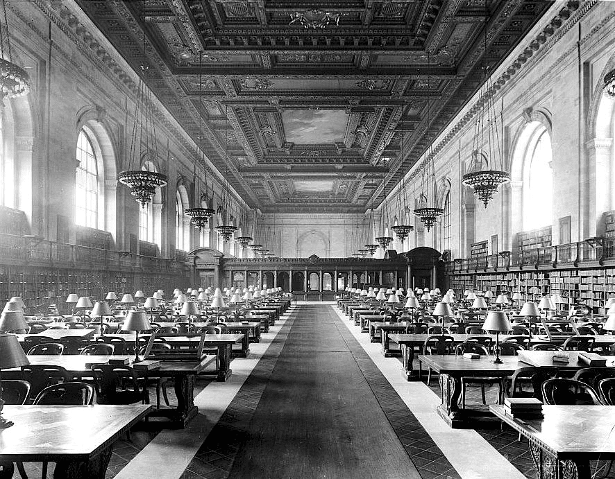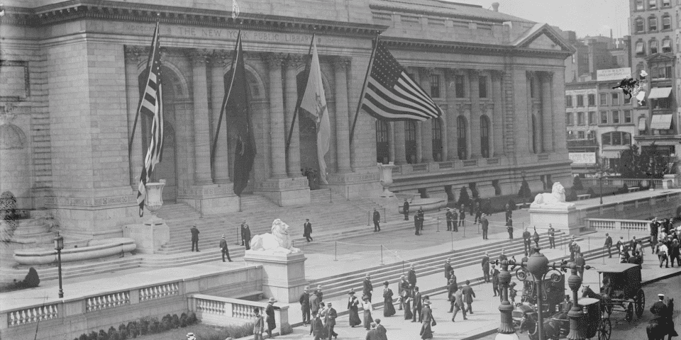 Общественная библиотека была открыта в 1911 году. На тот момент в ней уже было более одного миллиона книг. В свой первые рабочий день библиотека приняла более 30 тысяч посетителей. Одним из самых популярных авторов книг в начале 20 века среди нью-йоркцев был Николай Яковлевич Грот. Также библиотеку очень часто посещали мигранты, которые хотели поближе узнать о истории страны и города в котором живут, познакомиться с историческим наследием и американской литературой.